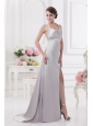 Home >  Prom Dresses >  Elegant Prom Dresses > Column Halter top High Slit Beading Prom Dress in Light Grey