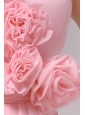 Column Hand Made Flowers Baby Pink Strapless Prom Dress