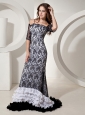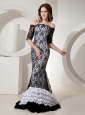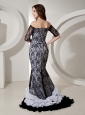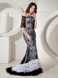 White and black are contrasting shades on one design, and this collection is eternal and lasting appreciated. This prom dress is accented with off the shoulder connecting a winding neckline and the layered whimsical ruffled hemline on the bottom of the skirt. The focus point is the black lace overlayed on the white inner part. Such a wonderful prom gown, don't hesitate to capture it!