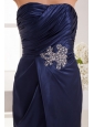 Home >  Prom Dresses >  Elegant Prom Dresses > Column Navy Blue Strapless Appliques Ruching Mini-length Prom Dress