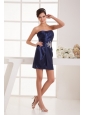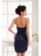 Column Navy Blue Strapless Appliques Ruching Mini-length Prom Dress