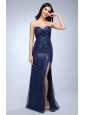 Column Navy Blue Sweetheart Sequins Floor-length High Slit Prom Dress
