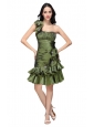 Column Olive Green One Shoulder Hand Made Flower Ruching Prom Dress