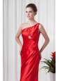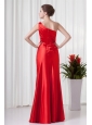 Column One Sholuder Red Taffeta Ruching Floor-length Prom Dress