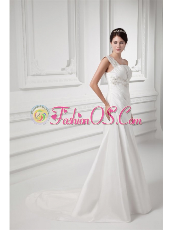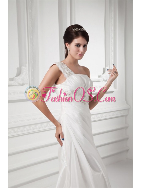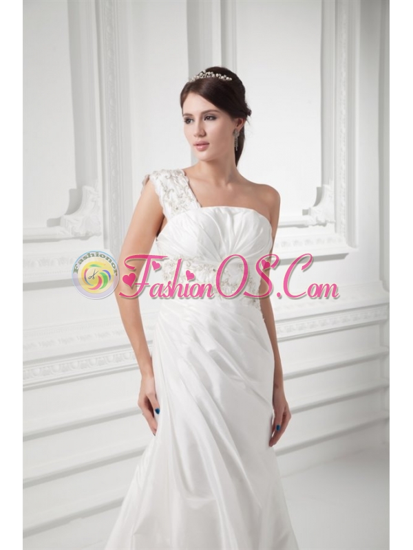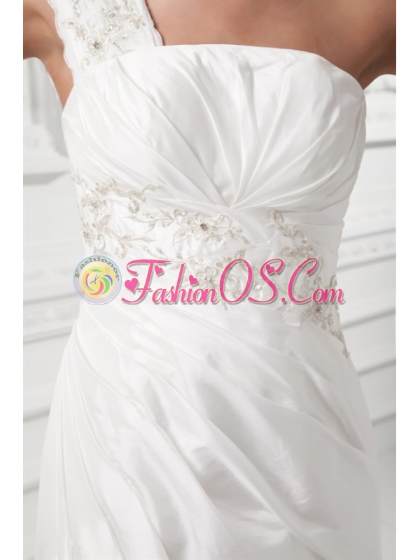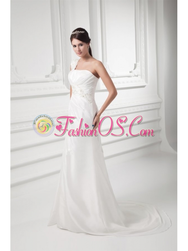 Home >  Wedding Dresses >  Perfect Wedding Dresses > Column One Shoulder Appliques and Ruching Chiffon Wedding Dress