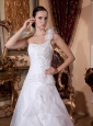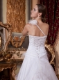 Column One Shoulder Appliques Decorate Bust Wedding Gows With Hand made Flowers
