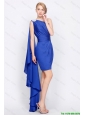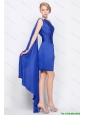 Column One Shoulder Beaded Prom Gowns in Royal Blue