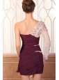 Column One Shoulder Beading Long Sleeves Chiffon Prom Dress