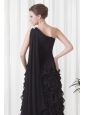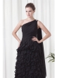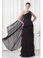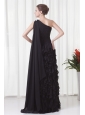 Column One Shoulder Black Watteau Train Chiffon Ruffles Prom Dress
