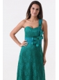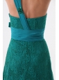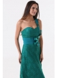 Column One Shoulder Lace Bow Floor-length Turquoise Prom Dress