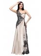 Column One Shoulder Lace Champgne Ruching Long Prom Dress