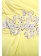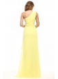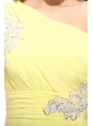 Column  One Shoulder Light Yellow Appliques Ruching Prom Dress