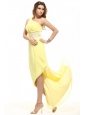 Home >  Prom Dresses >  High Low Prom Dresses > Column One Shoulder Light Yellow Appliques Ruching Prom Dress