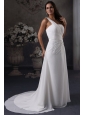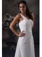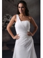 Column One Shoulder Ruching Court Train Chiffon Wedding Dress