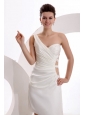 Column One Shoulder Ruching Mini-length Wedding Dress