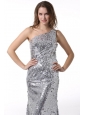 Column One Shoulder Silver Brush Train Seuqin Prom Dress