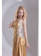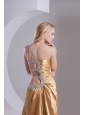 Home >  Prom Dresses >  Beautiful Prom Dresses > Column One Shoulder Taffeta Beading Ruching Gold Prom Dress