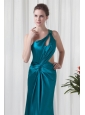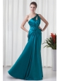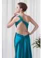 Column One Shulder Teal Ruching Elastic Woven Satin Prom Dress with Criss Cross