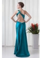 Home >  Prom Dresses >  Sexy Prom Dresses > Column One Shulder Teal Ruching Elastic Woven Satin Prom Dress with Criss Cross