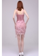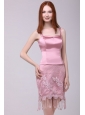 Column Rose Pink Sapghetti Straps Lace Satin Prom Dress