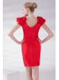 Column Scoop Cap Sleeves Wine Red Short Prom Dress