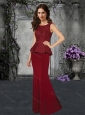 Column Scoop Wine Red Mother of  The Bride Dress with Lace and Beading