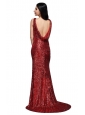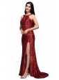 Home >  Prom Dresses >  Sexy Prom Dresses > Column Scoop Wine Red Sequins High Slit Brush Train Prom Dress