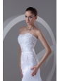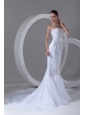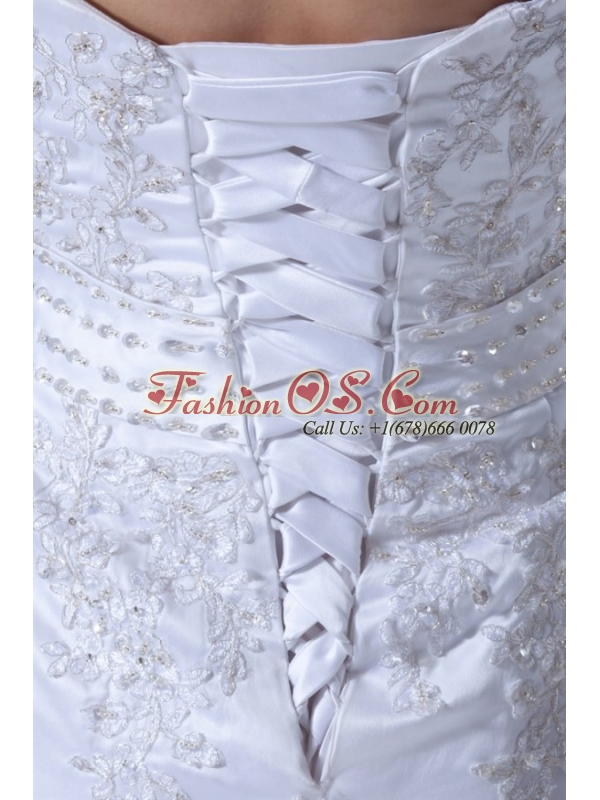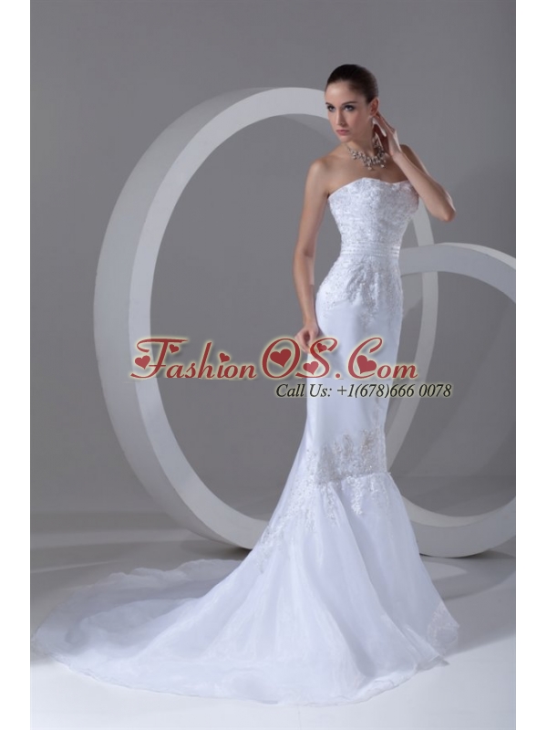 Home >  Wedding Dresses >  Perfect Wedding Dresses > Column Strapless Appliques Court Train Organza Wedding Dress