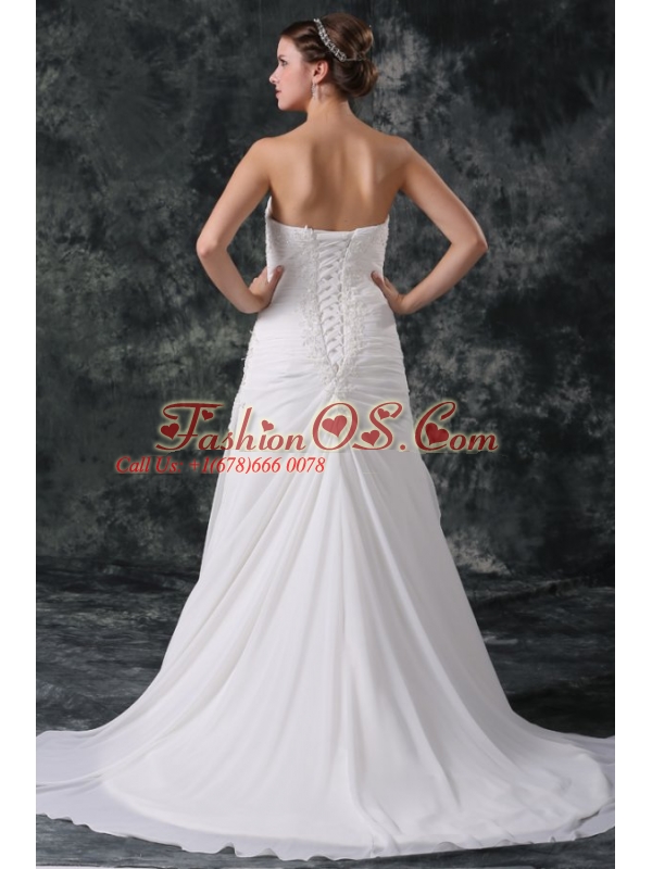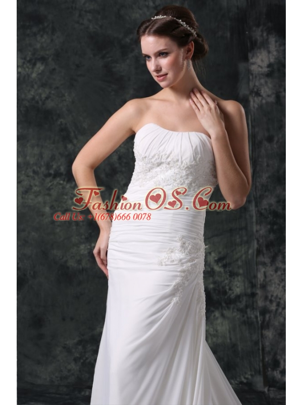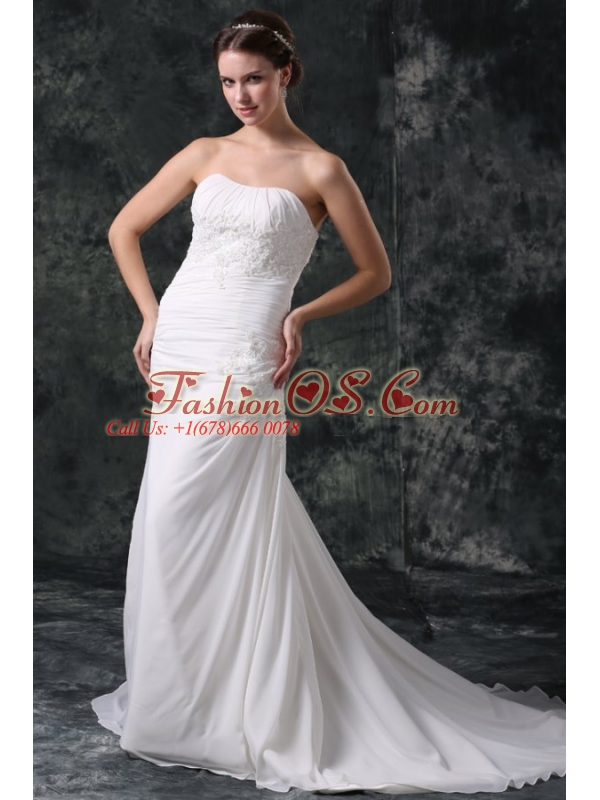 Home >  Wedding Dresses >  Perfect Wedding Dresses > Column Strapless Beading Chiffon Court Train Lace Up Wedding Dress