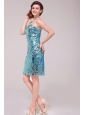 Home >  Prom Dresses >  Beautiful Prom Dresses > Column Strapless Blue Sequins Prom Dress with Knee-length