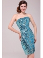 Column Strapless Blue Sequins Prom Dress with Knee-length