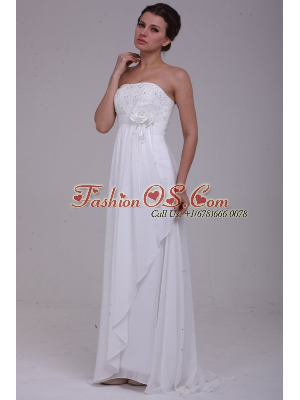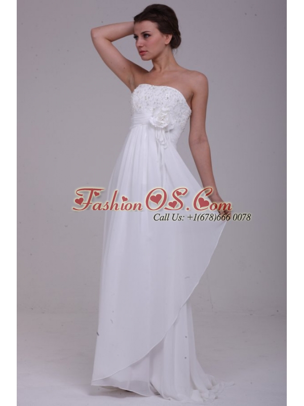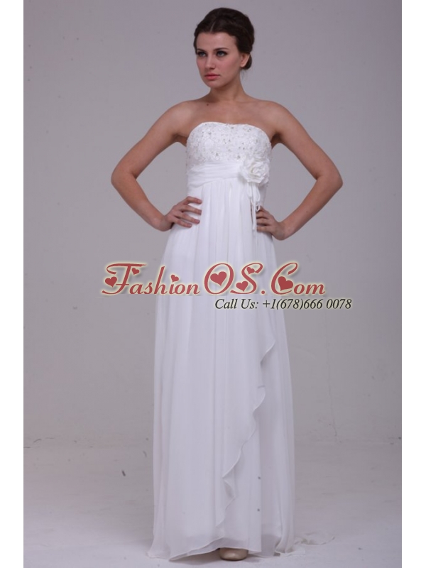 Column Strapless Chiffon Floor-length Beading Wedding Dress