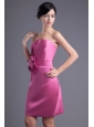 Home >  Prom Dresses >  Discount Prom Dresses > Column Strapless Rose Pink Ruching Taffeta Mini-length Prom Dress