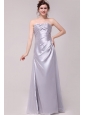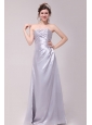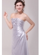 Column Strapless Ruching Taffeta Grey Prom Dresses With Floor-length