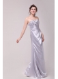 Home >  Prom Dresses >  Modest Prom Dresses > Column Strapless Ruching Taffeta Grey Prom Dresses With Floor-length