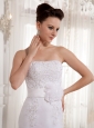 Column Strapless Sash Court Train Wedding Dress With Lace Court Train 2013