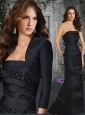 Column Strapless Satin Black Mother of The Groom Dress with Beading