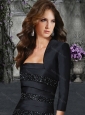 Home >  Special Occasion Dresses >  Mother of the Bride Dresses > Column Strapless Satin Black Mother of The Groom Dress with Beading