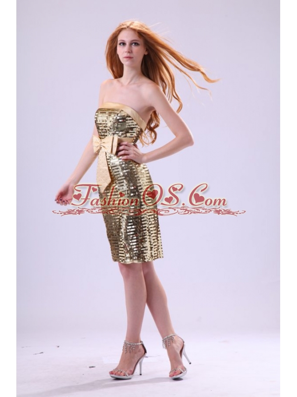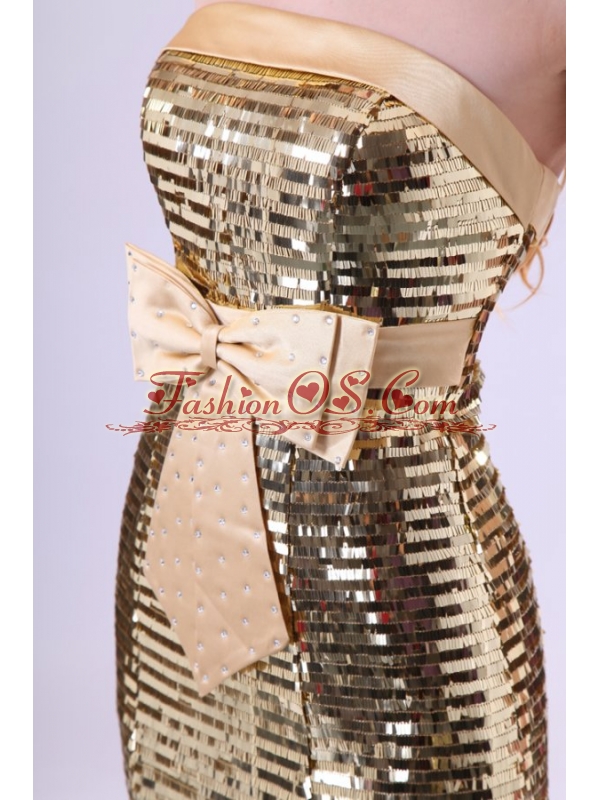 Home >  Prom Dresses >  Beautiful Prom Dresses > Column Strapless Sequins Prom Dress with Bowknot