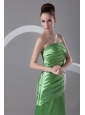 Column Strapless Spring Green Ruching Taffeta Floor-length Prom Dress