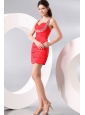Home >  Prom Dresses >  Fashionable Prom Dresses > Column Straps Beading and Ruching Short Red Prom Dress