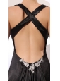Column Straps Black Elastic Woven Satin Criss Cross Prom Dress with Beading