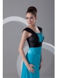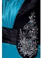 Home >  Prom Dresses >  Best Prom Dresses > Column Straps Blue and Black Ruching and Appliques Elastic Woven Satin Prom Dress