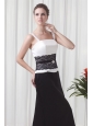 Column Straps Floor-length Lace Black and White Prom Dress