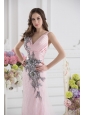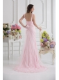 Home >  Prom Dresses >  Beautiful Prom Dresses > Column Straps Lace Appliques Ruching Baby Pink Lace Prom Dress