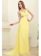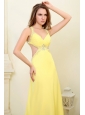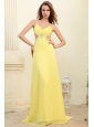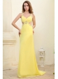 Column Straps Light Yellow Beading and Ruching  Prom Dress