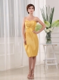 Home >  Prom Dresses >  Elegant Prom Dresses > Column Straps Prom Dress Taffeta Knee-length Homecoming Yellow