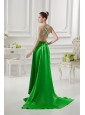 Column Straps Ruching and Beading High Slit Taffeta Prom Dress