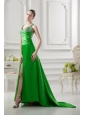 Home >  Prom Dresses >  Popular Prom Dresses > Column Straps Ruching and Beading High Slit Taffeta Prom Dress