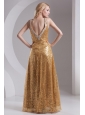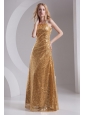 Column Straps Sequins Beading and Sequins Prom Dress in Gold